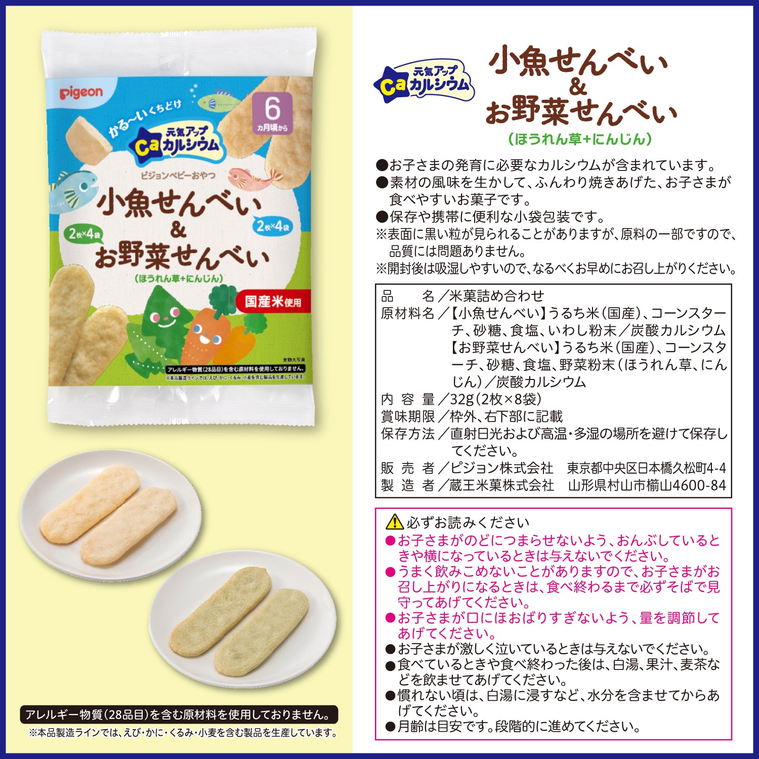 <元気アップCa 小魚せんべい&お野菜せんべい ほうれん草+にんじん>