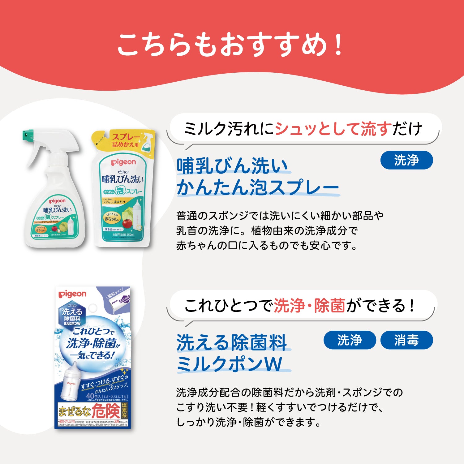 ●ご使用後、乳首やびん、各部品は洗剤やブラシを使用して十分に洗浄した後、消毒を行ってください。