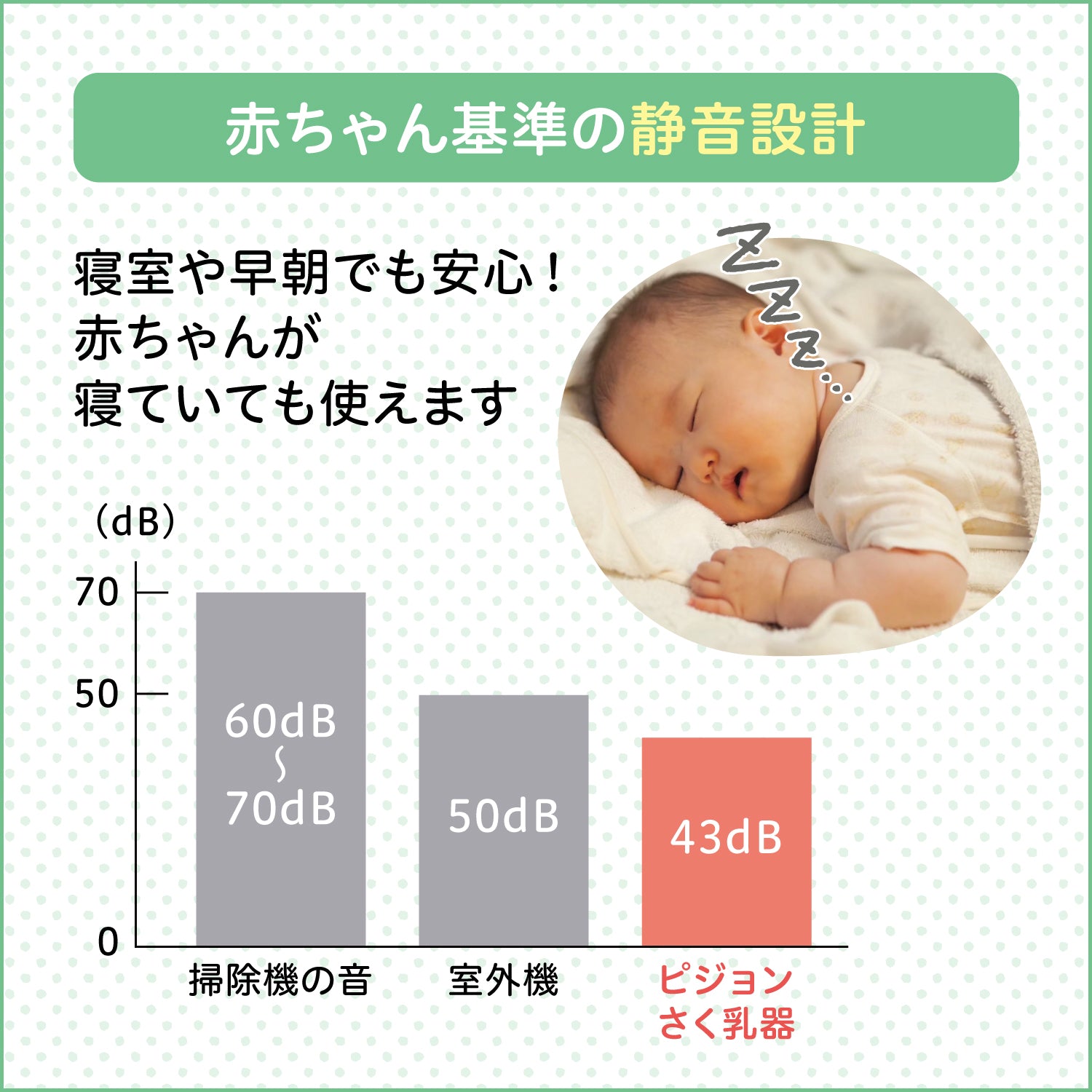 自然な母乳分泌を促すために、赤ちゃんの吸い始めのようなやさしく細かい吸引で刺激します。