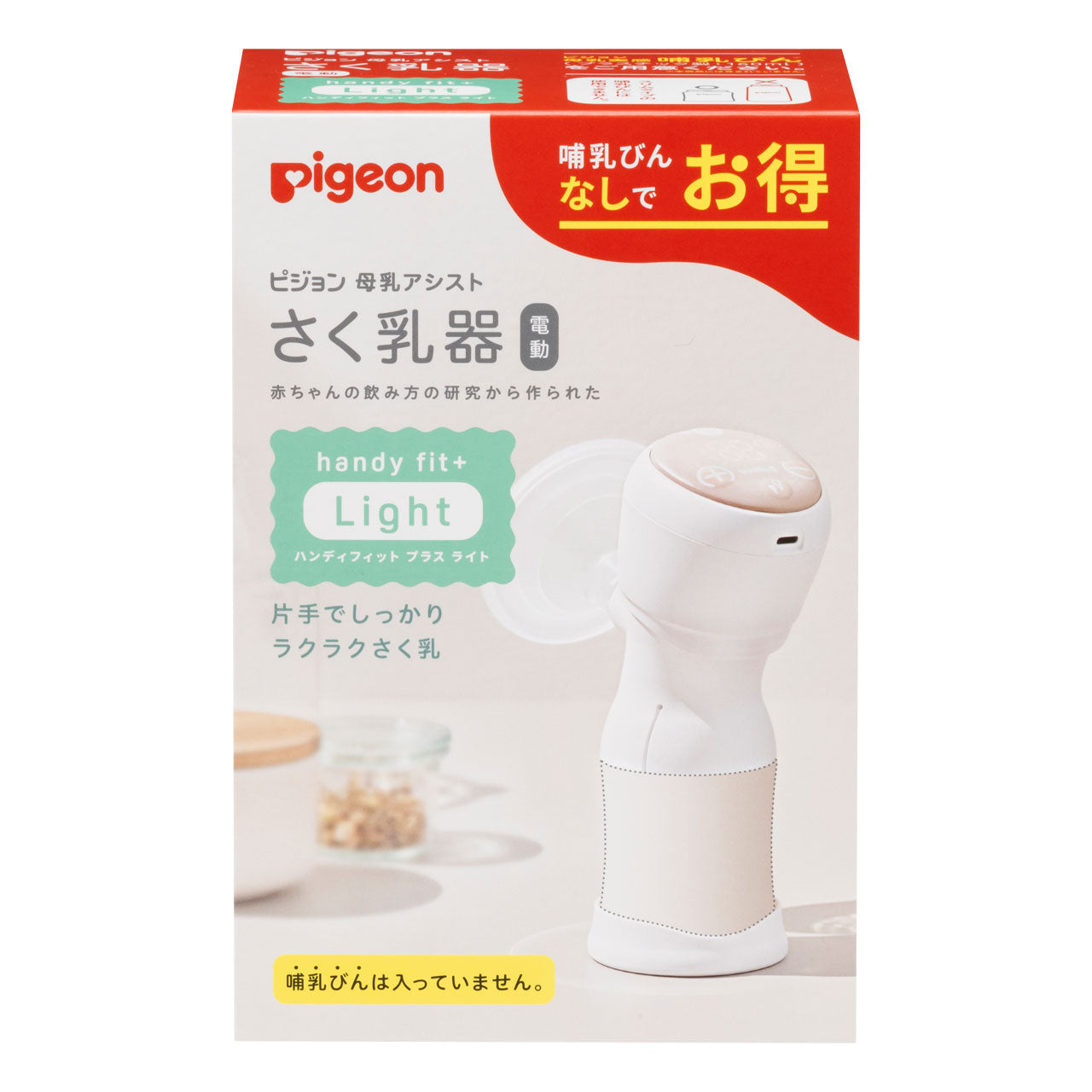 「さく乳器 電動 handy fit+ Light」は、軽くてコンパクトな電動タイプのさく乳器(搾乳器)です。