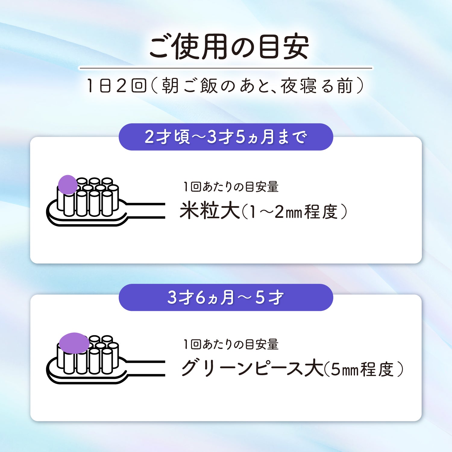 <ご使用の目安>1日2回(朝ご飯のあと、夜寝る前)