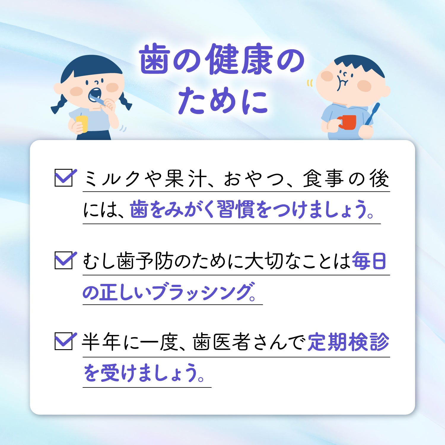 ・半年に一度、歯医者さんで定期検診を受けましょう 。