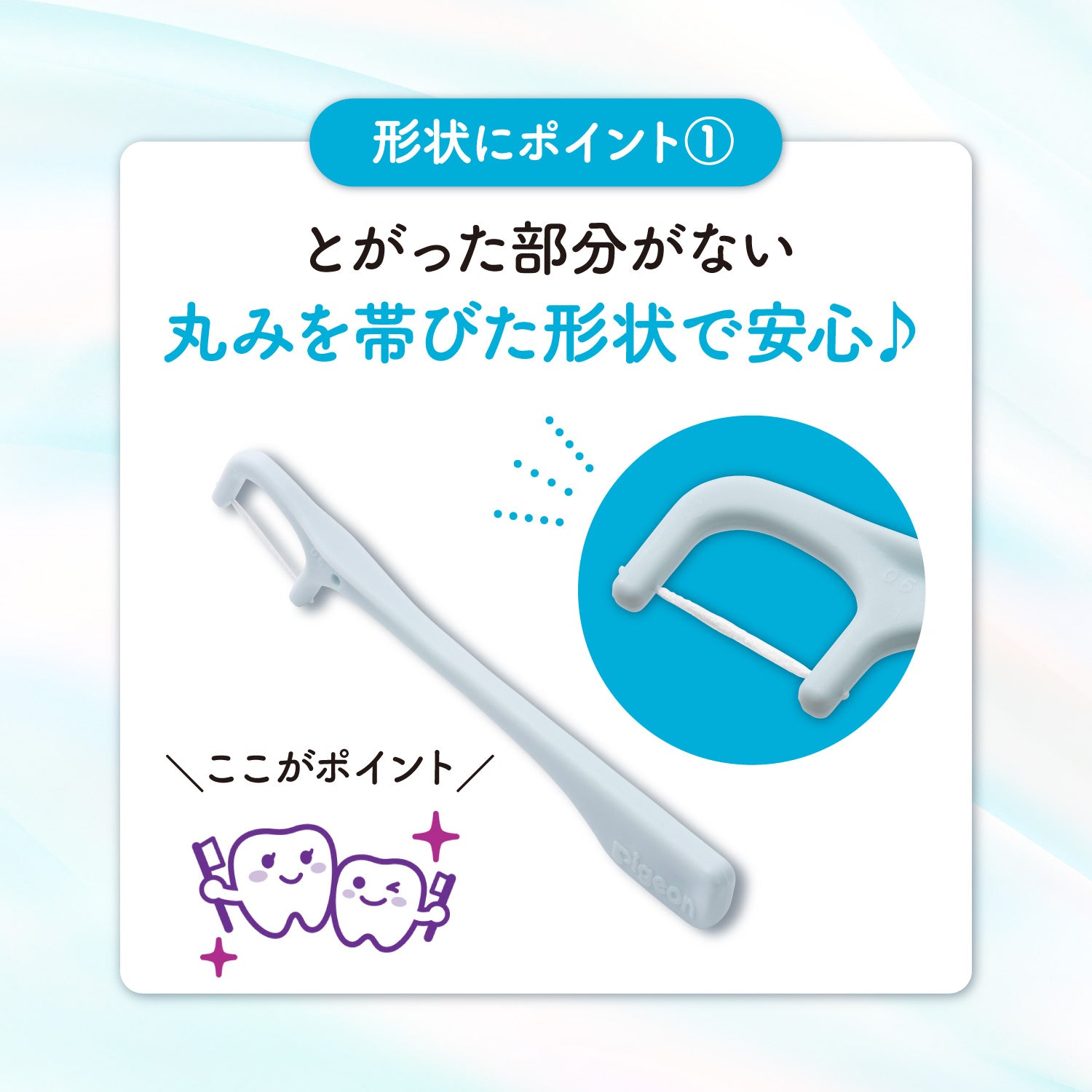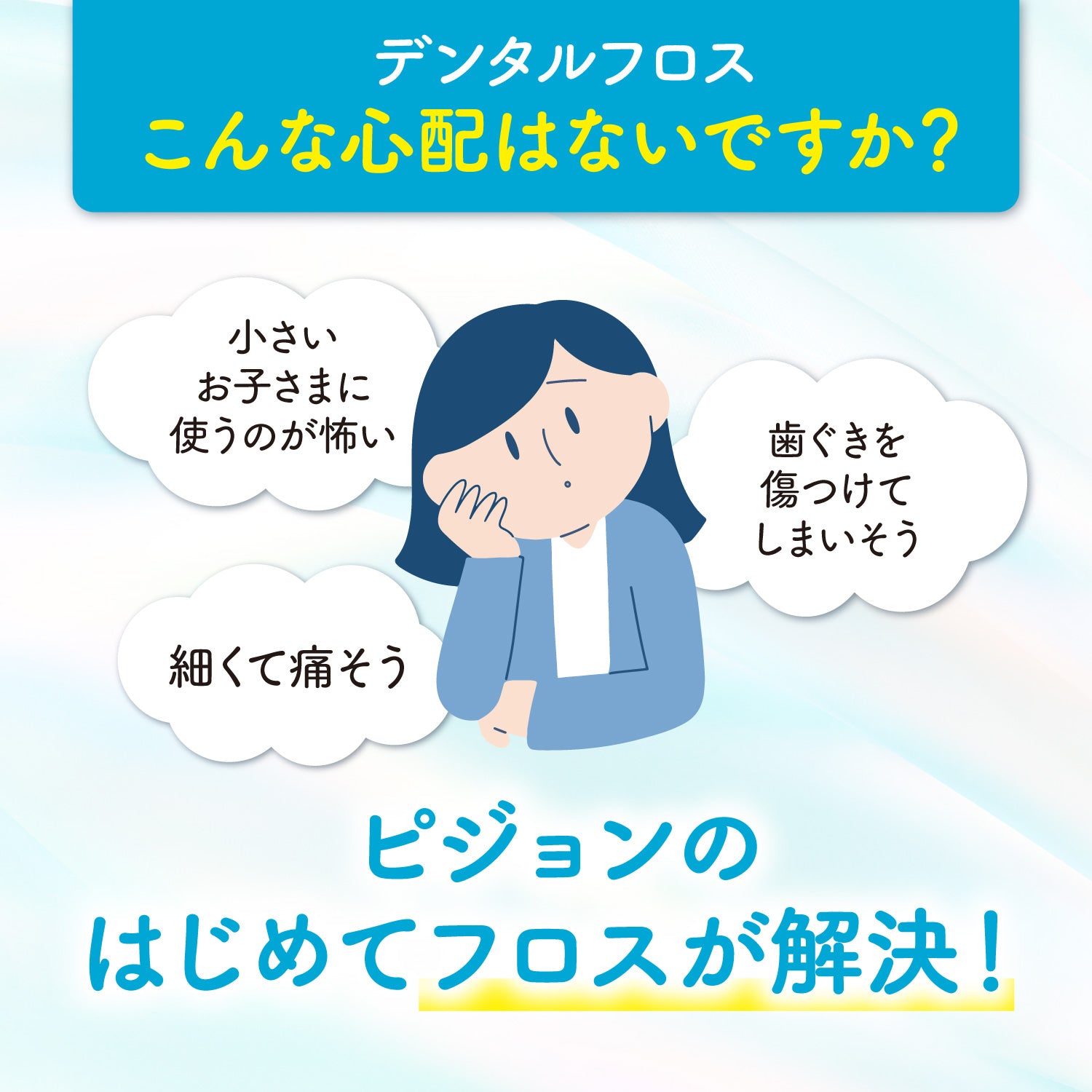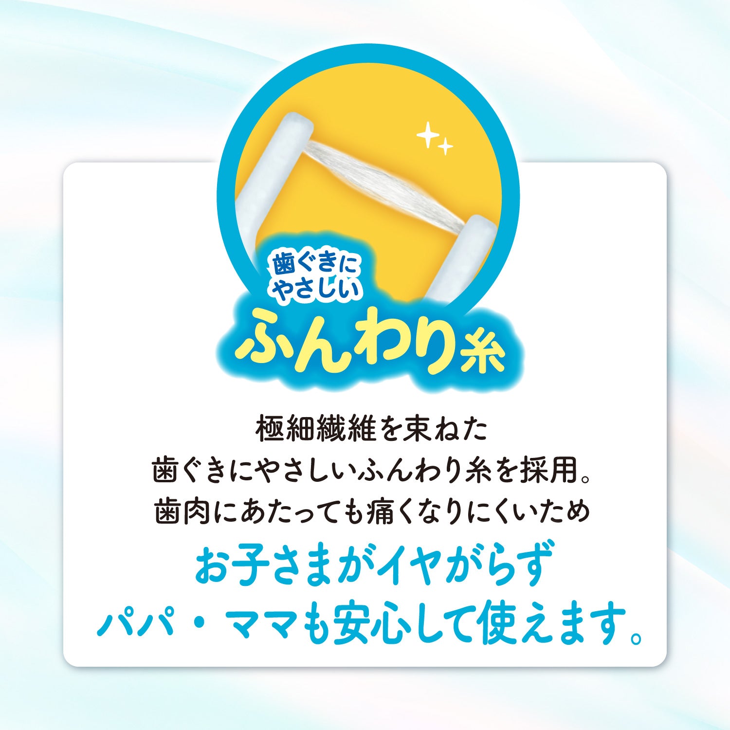 『歯ブラシだけでは取り切れない歯間の汚れを、歯ぐきにやさしい繊維でしっかりからめとることができる幼児用フロスです。