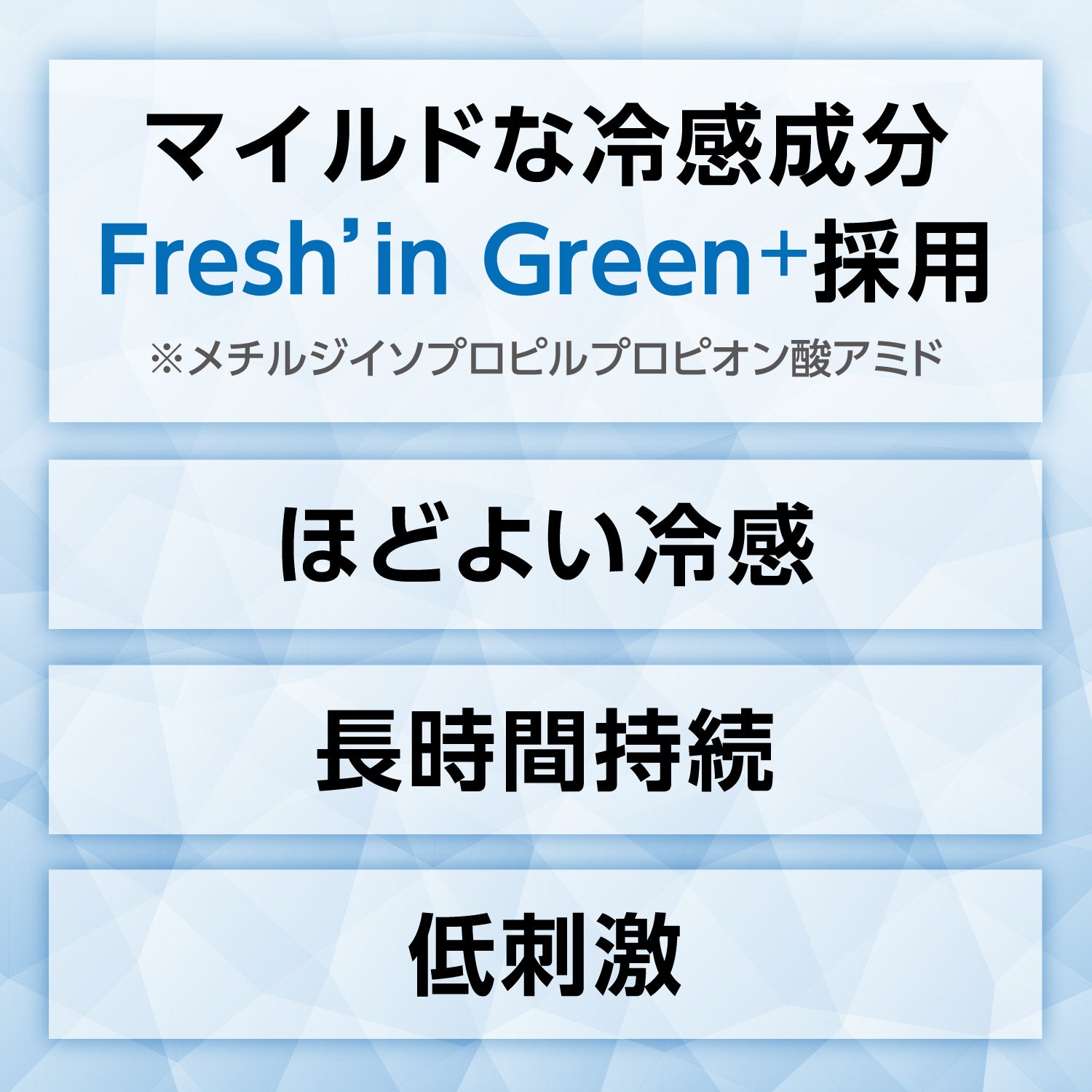 ・マイルドな冷感成分「Fresh'in Green+」を採用