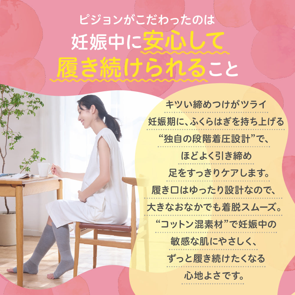 ふくらはぎを下からググッと持ち上げる独自の編地で締め付けがツライ妊娠期~産後も、ほどよく引き締め脚スッキリ