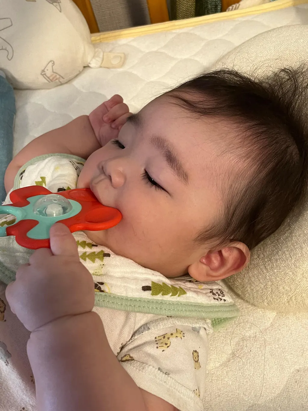 真ん中が鈴になっているので、息子のお気に入りで、毎日手に持ってカミカミカミカミしているのが可愛いです。