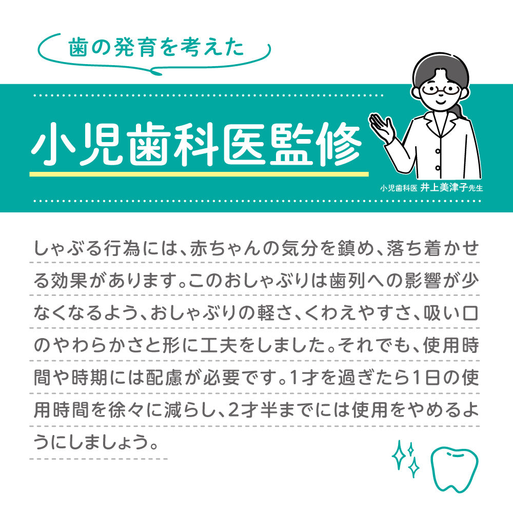 歯の発育を考えた”小児歯科医監修”のおしゃぶりです。