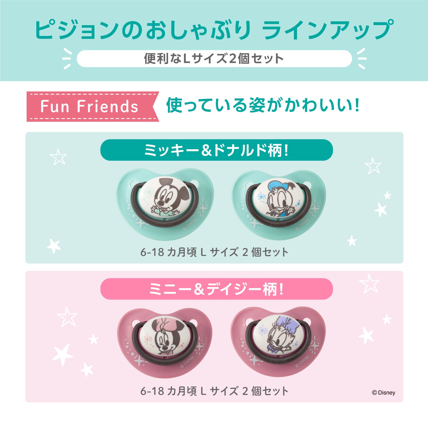 おしゃぶりFun Friends 6-18/L 2個入り (ディズニー)