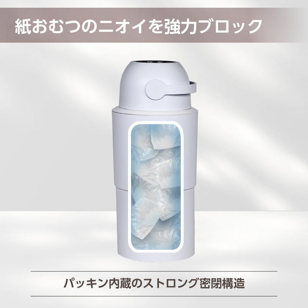 ・パッキン内蔵のストロング密閉構造で、紙おむつのニオイを強力ブロック